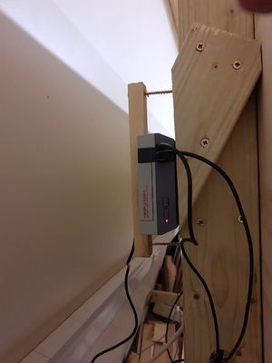 Once it's pulled forward, you should be able to see a Raspberry Pi computer in a NES style case fixed on the left hand side behind the cutting board. Push the on/off button (the bottom one) and it will switch on the rest of the Maslow CNC with a relay.